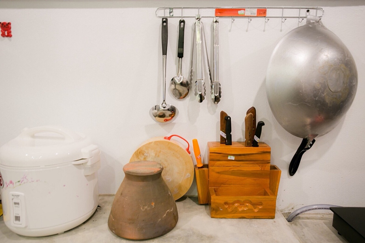- อุปกรณ์ครัวให้พร้อม จานชามพร้อม
