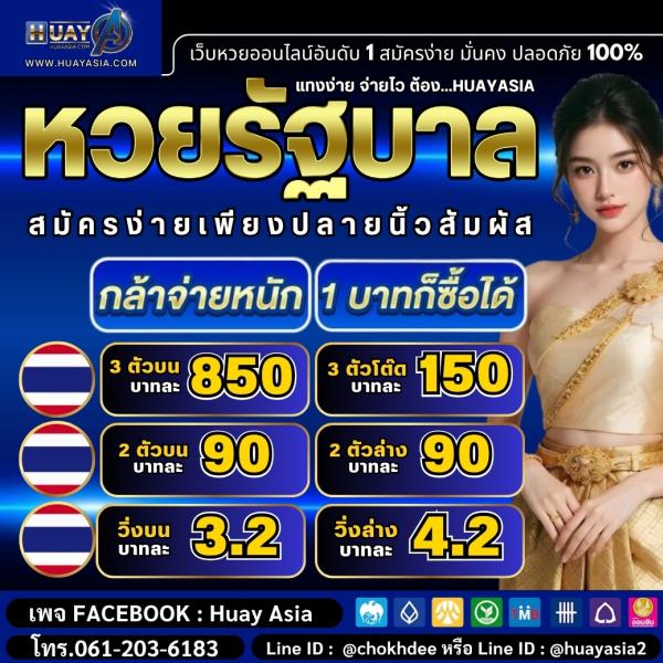 หัวข้อ: เว็บซื้อหวยออนไลน์ HUAYASIA ฝาก-ถอนไว ภายใน 5 นาที