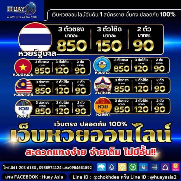 เว็บหวยออนไลน์ เว็บซื้อหวย HUAYASIA ครบวงจรจบทีเดียว