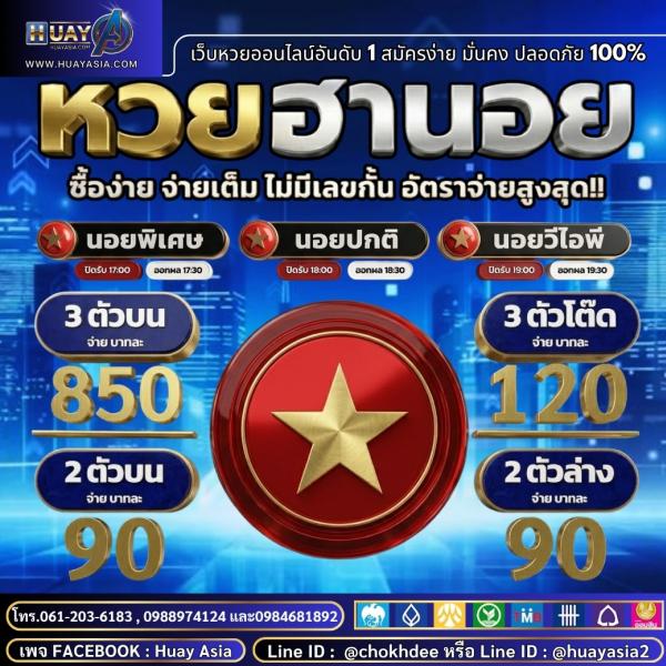 หัวข้อ: ซื้อหวยออนไลน์เวบไหนดี 2568 HUAYASIA เว็บนี้จ่ายจริง 100% เชื่อถือได้ อันดับ1