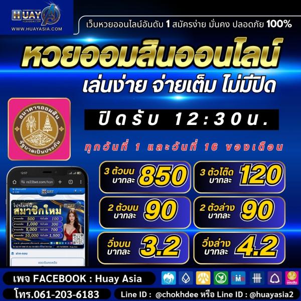 เว็บหวยออนไลน์ เว็บซื้อหวย HUAY ASIA ครบวงจรจบทีเดียว