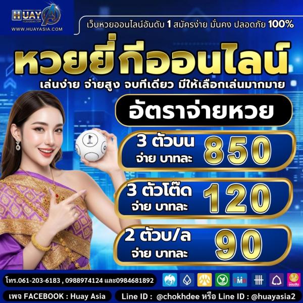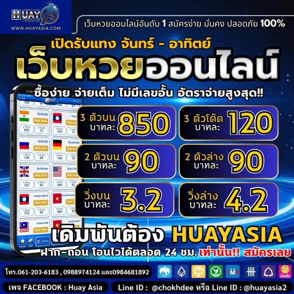 หัวข้อ: เว็บซื้อหวยออนไลน์ HUAYASIA ฝาก-ถอนไว ภายใน 5 นาที