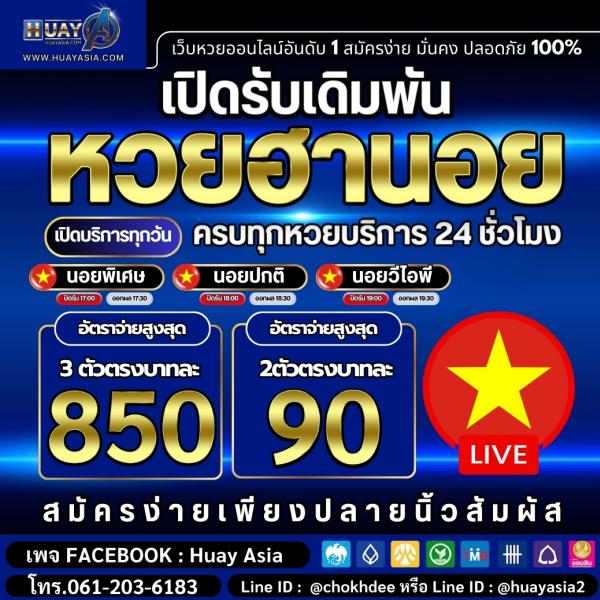 หัวข้อ: เว็บซื้อหวยออนไลน์ HUAY ASIA ฝาก-ถอนไว ภายใน 5 นาที