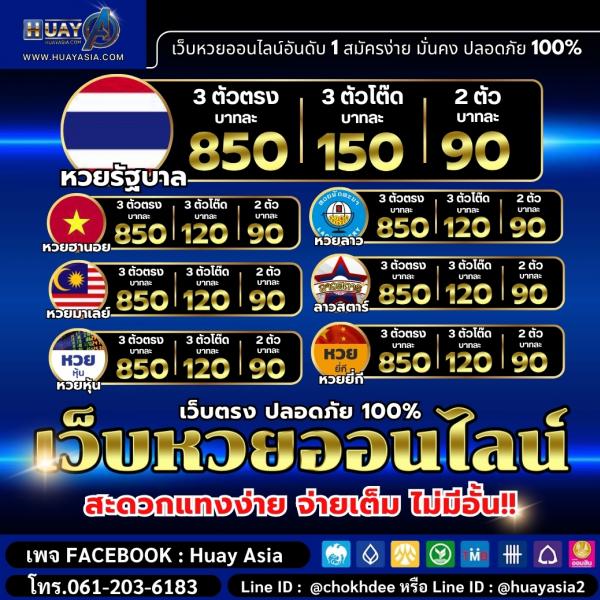 เว็บหวยออนไลน์ เว็บซื้อหวย HUAY ASIA ครบวงจรจบทีเดียว